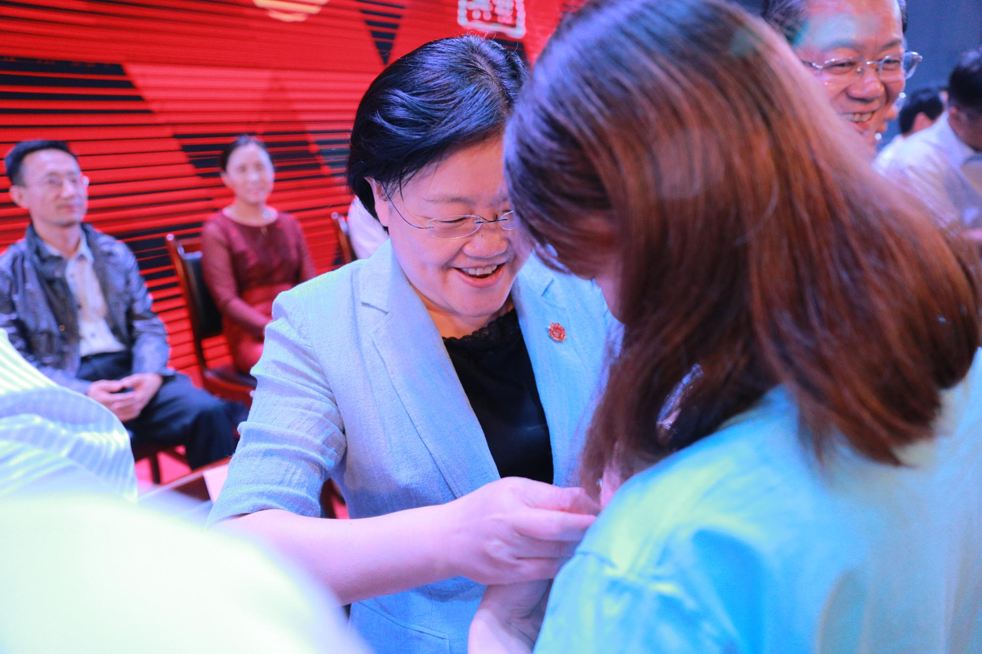 为新生代表佩戴校徽