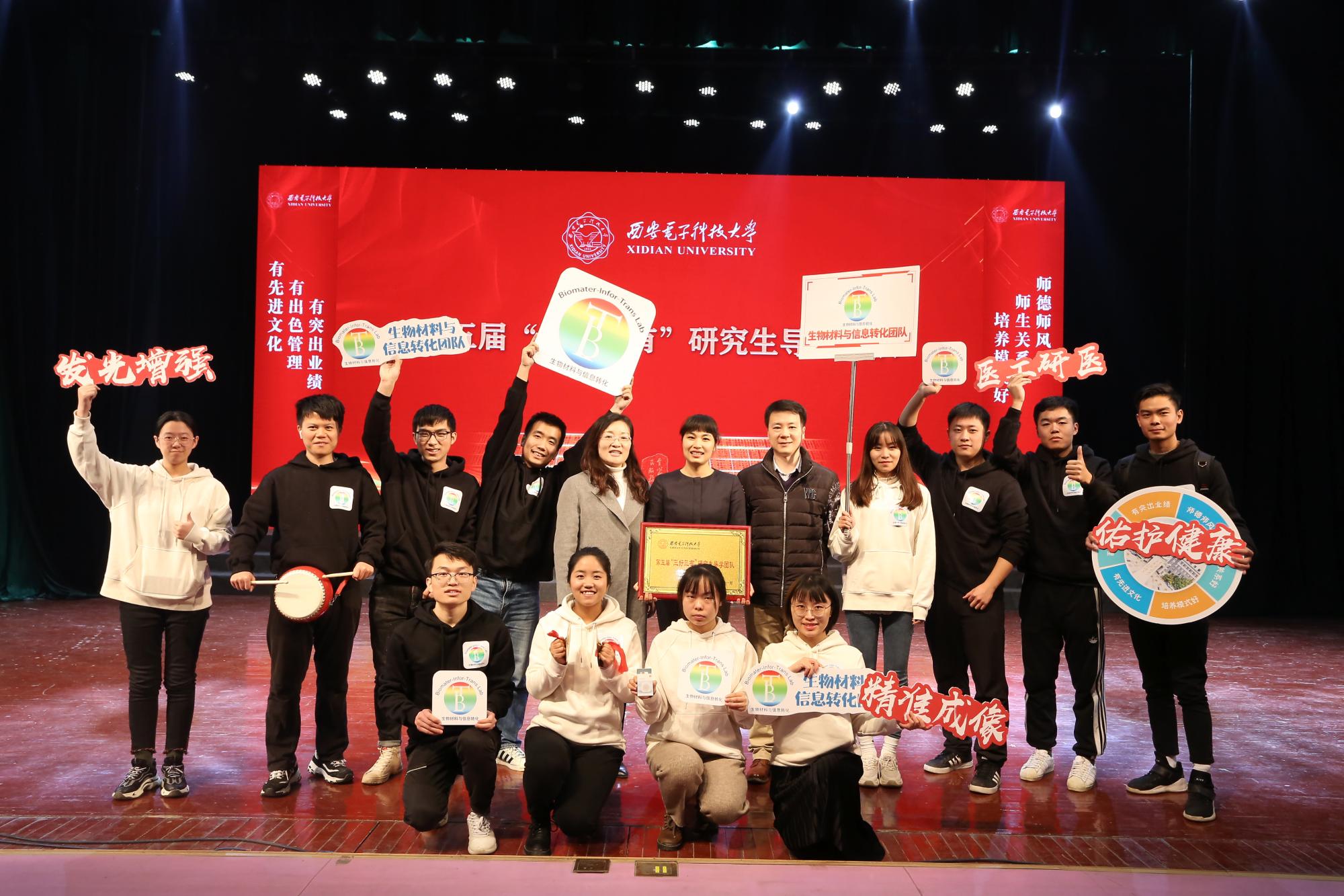 11月27日下午,在生命科学技术学院吕锐婵教授的指导和带领下,生物材料与信息转化BIT团队以三句半、演讲以及合唱的形式完美地展现了团队风貌,收获了现场评委与观众的阵阵掌声与一致好评,并最终在激烈的竞争中获得了第五届“三好三有”研究生导学团队荣誉称号。