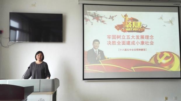 作为学校成立的十八届三中全会、五中全会、十九大精神宣讲团成员,张蔚虹老师认真领会会议和报告精神,结合自己的专业特长,提高讲授质量,使党的路线、方针和政策进入头脑、滋润心田。在以专题讲座的形式向教职工和学生宣讲党中央的重大决策部署和重要会议精神时,张蔚虹老师针对授课对象的不同,精心选择授课内容,数据图表资料翔实,形式新颖,内容时效性强,使受众有所思、有所悟,更有所得。