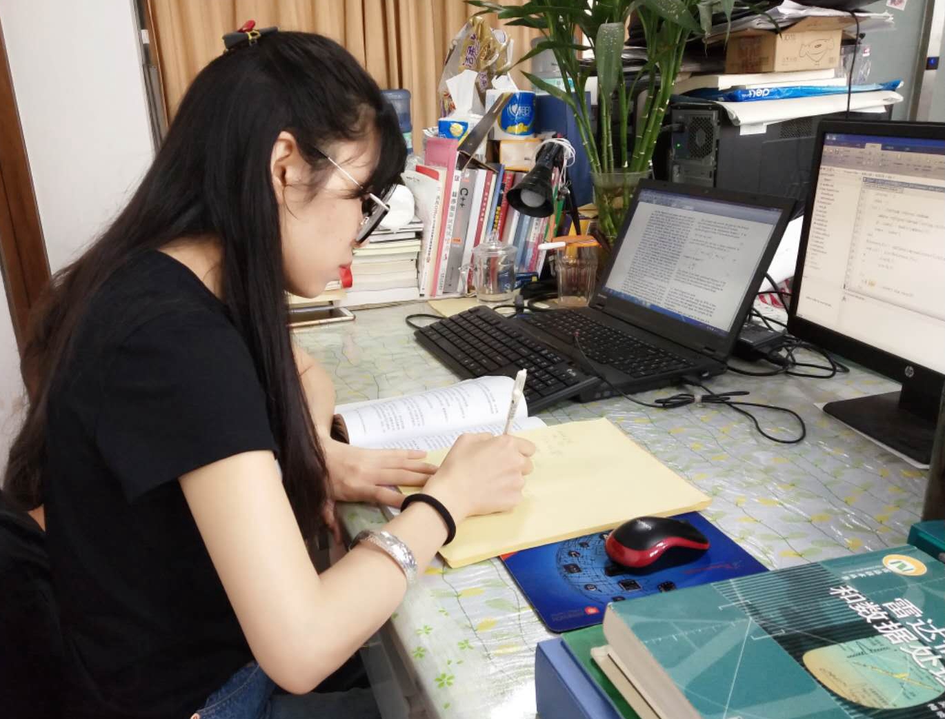 由于所采集的原始数据有误,使用多种算法对该数据处理均失效,在几乎快要接近沮丧的时候她改变思路,通过与导师以及合作单位的多次交流沟通发现该数据有误,并协助合作单位重新获取了一批新数据。然而科学研究就像过关打怪,攻克一关接着还有下一关,由于数据复杂,运算结果一度不理想,连续一周没日没夜沉浸在实验室之中依然无所获。但是,王雅坚信“天道酬勤”,问题出在哪就从哪重新拾起,运算结果不理想就换个算法再试试,翻看众多中英文资料后一个算法让王雅眼前一亮,经过她的改良之后果然运算出来的结果效果显著。功夫不负有心人,导师对她这次算法的改良都竖起了大拇指。
