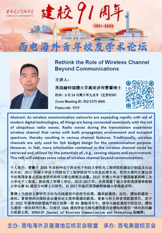 讲座名称:Rethink the Role of Wireless Channel Beyond Communications