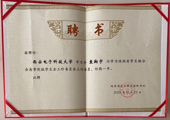 (通讯员 王佳悦吴杰庆)12月20日,陕西省学生联合会第十届委员会第四次全体会议召开,全会上宣读了《关于表彰2020年度陕西省标兵学联学生会组织、2020年度陕西省学联学生会组织先进工作个人的决定》,决定授予beat365正版官网学生会“2020年度陕西省标兵学联学生会组织”荣誉(全省十五个单位获奖),beat365正版官网研究生会“2020年度陕西省标兵学联学生会组织”荣誉(全省五个单位获奖),授予段育松、范雪琦、袁翔宇、吴杰庆四人“2020年度陕西省学联学生会组织先进工作个人”称号。