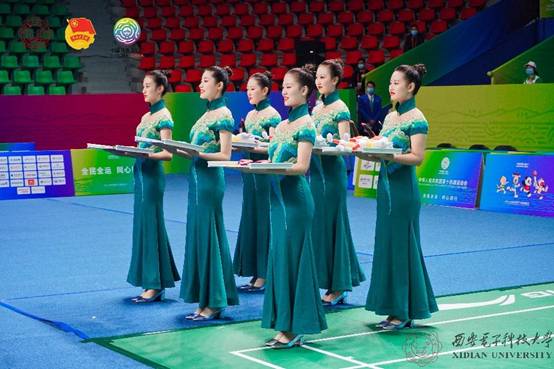 礼泉体育馆内,13名青春靓丽的礼仪志愿者身着“绿水青山”礼仪服坚守在各自岗位。明媚动人的笑容、热情周到的服务、整齐划一的礼仪引领,展现了西电青年良好的精神风貌,赢得了现场嘉宾、运动员及观众的点赞与好评。