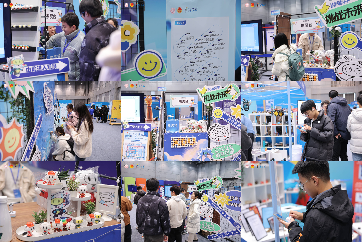 本次星火科创嘉年华设置“智慧印章*签名墙*创意小摊”互动打卡区,无需充电、联网,只需在手机屏幕上轻轻按压即可获得各展位打卡电子印章,兑换抽奖券,抽取GEEK小将“星火杯周边”文创。学生在参观展览过程中,纷纷在签名墙留下签名打卡、在学院/书院展区前体验科创项目完成集章。通过多元化的互动方式,让参展学生上手体验、亲身实践、深入思考。