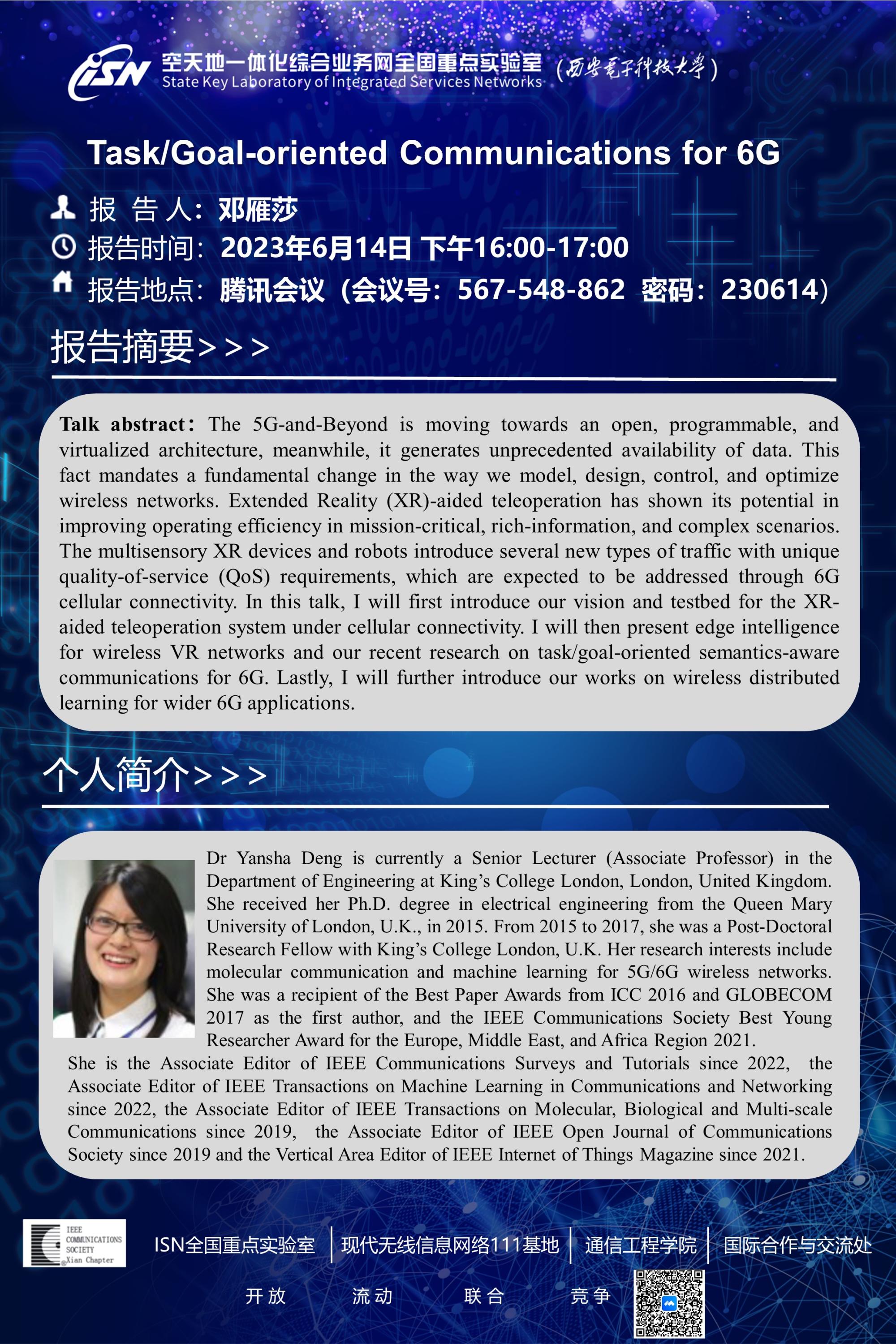 报告人:Yansha Deng Associate Professor